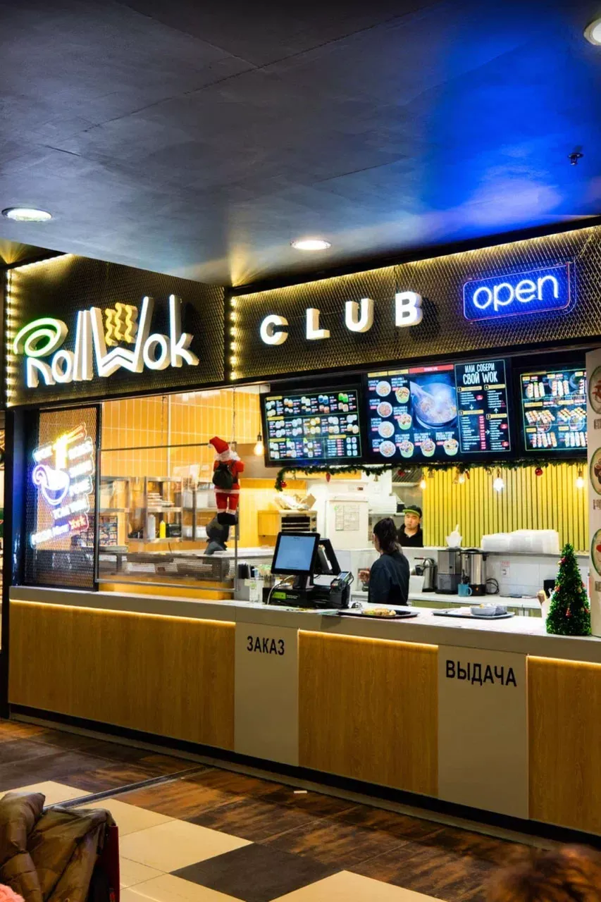 Разработка светящейся интерьерной вывески суши-бара «Roll Wok Club» в Сортавале