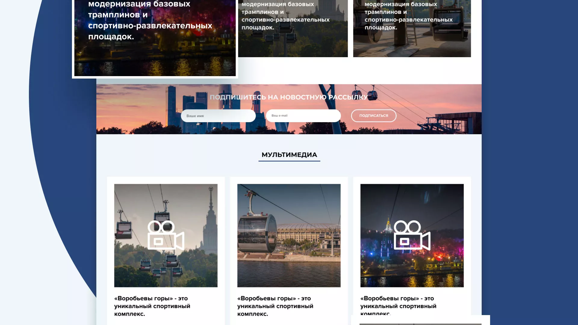 Разработка официального сайта в Сортавале для спортивно-развлекательного комплекса «Воробьёвы горы».
