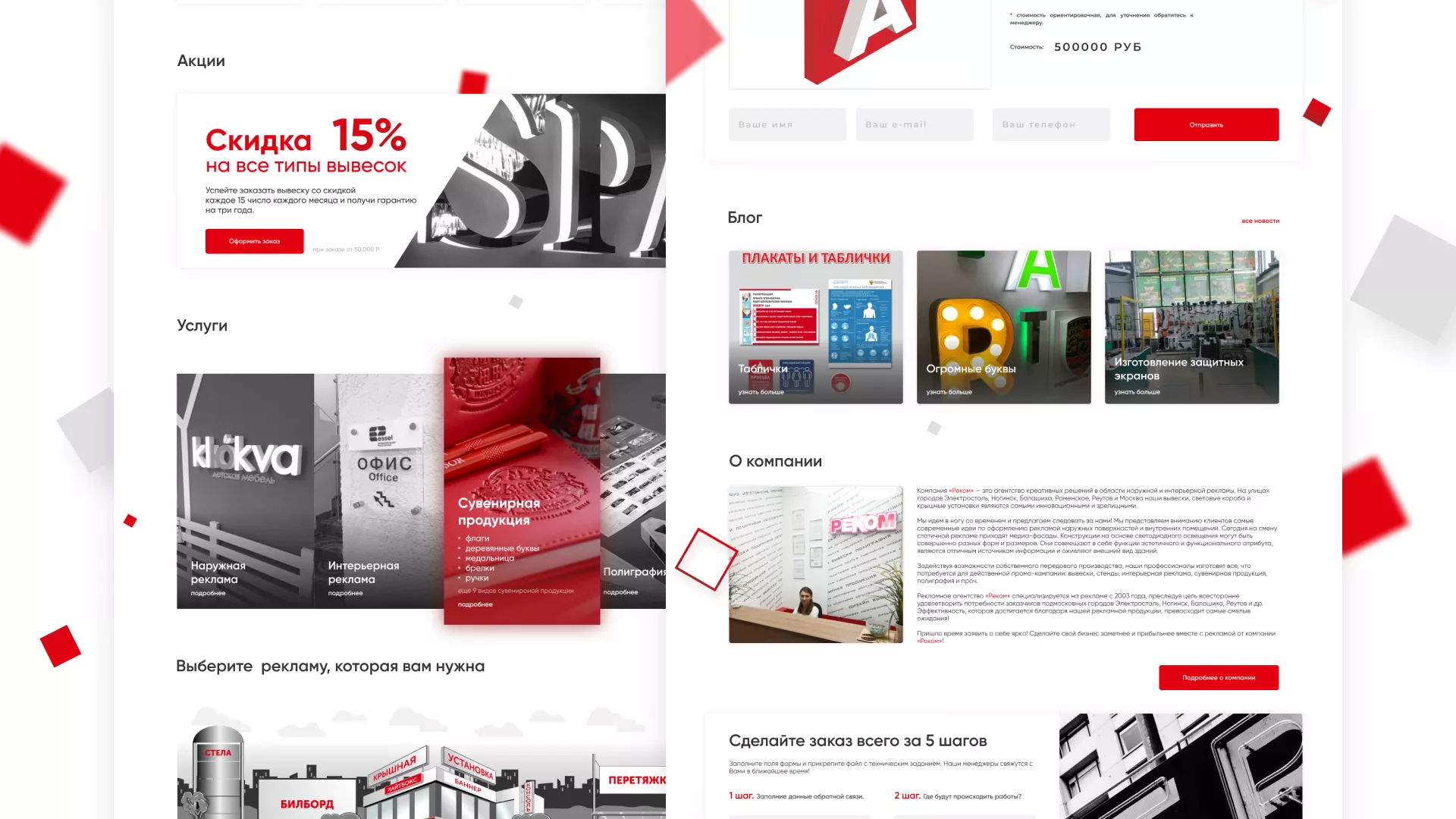 Стаж рекламно-производственной компании «РЕКОМ» — более 15 лет. Компания оказывает полный спектр услуг в Сортавале по интерьерной и наружной рекламе, а также по широкоформатной печати и полиграфии.