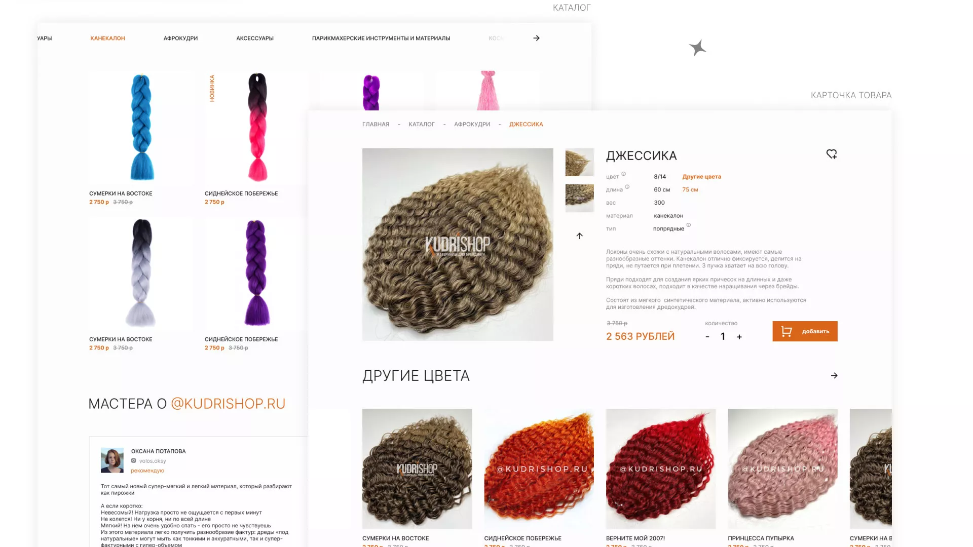 Создание интернет-магазина по продаже афрокудрей и других материалов для брендинга в Сортавале. Целевая аудитория — молодые и современные девушки, желающие разнообразить свой образ.