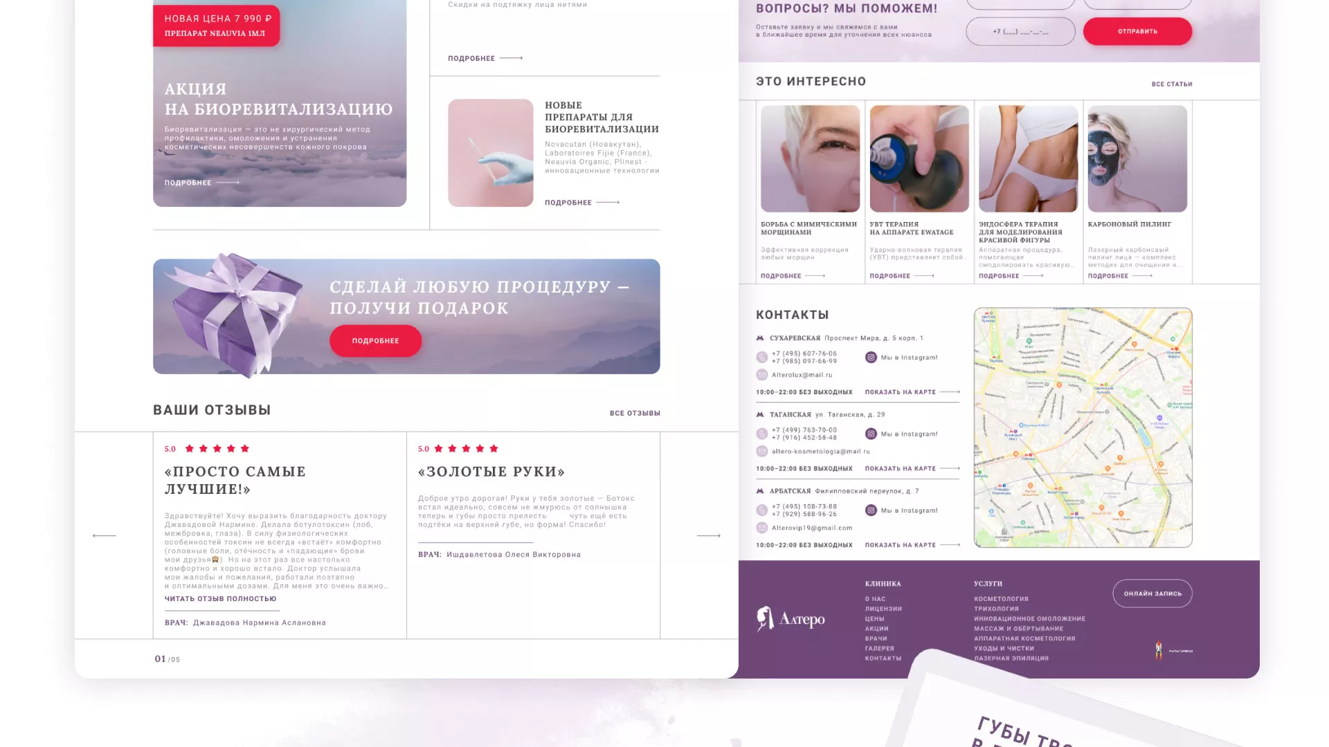 Сеть клиник эстетической косметологии «Алтеро» в Сортавале — это квалифицированные специалисты, новейшее оборудование, качественные препараты, эффективные и разнообразные методы лечения, индивидуальный подход с учетом физиологических особенностей и пожеланий пациента, доступные цены.